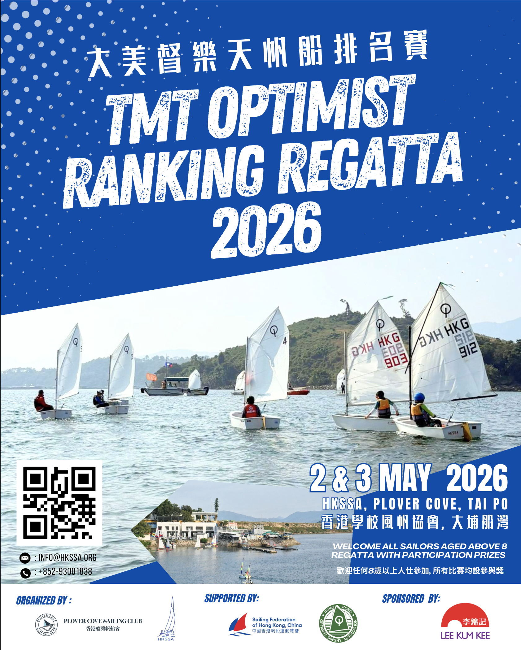 Join us for an exciting day of sailing at the 【Tai Mei Tuk Optimist Ranking Regatta 2026 】 ! This event is open to all young sailors aged 8 and above, for classes of Green, Intermediate and Main Fleet. Whether you’re a beginner or an experienced racer, this is a great opportunity to enjoy friendly competition and improve your sailing skills. Participants will receive prizes and recognition for their efforts!